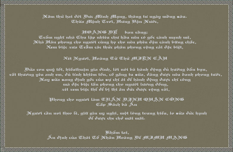 Hoàng Đế Minh Mạng ban cho: